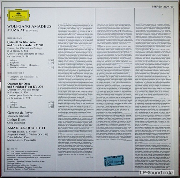 MOZART CLARINET QUINTETS AMADEUS QUARTET DG 2530 720 > 실내악곡