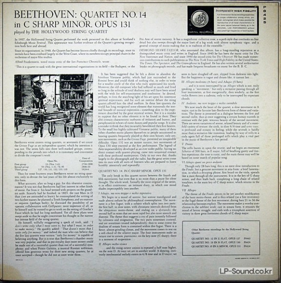 BEETHOVEN NO 14 HOLLYWOOD STRING QUARTET CAPITOL P 8425 > 실내악곡
