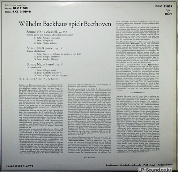 BEETHOVEN NO 14/8 /23 BACKHAUS BLK 21039 > 독주곡