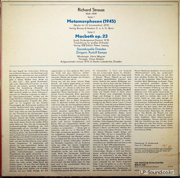 RICHARD STRAUSS - METAMORPHOSEN; MACBETH - ETERNA LP STEREO 1975 / 8 26 626 > 관현악곡