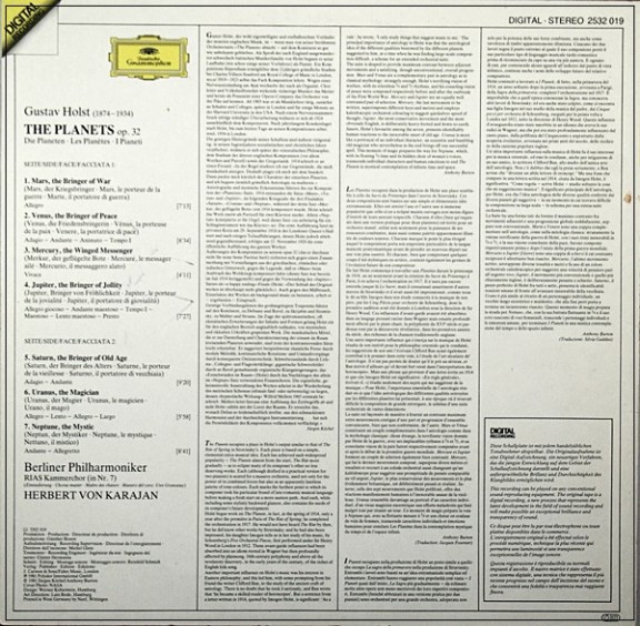 • HOLST "THE PLANETS" 1981 GERMANY AUDIOPHILE KARAJAN DG 2532 019