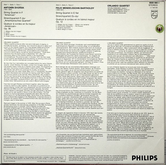 DVORAK / MENDELSSOHN / ORLANDO QUARTET PHILPS 9500 995
