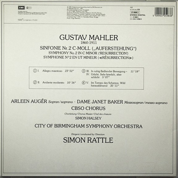 MAHLER SYMPHONY No.2 SIMON RATTLE 1987 HMV EX 27 0598 3 > 관현악곡