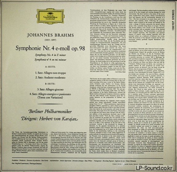 BRAHMS - SYMPHONIE NR.4 KARAJAN DGG 138 927 SLPM > 관현악곡