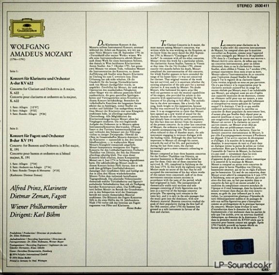 MOZART - CLARINET & BASSOON CONCERTOS PRINZ / ZEMAN DG 2530 411 > 실내악곡