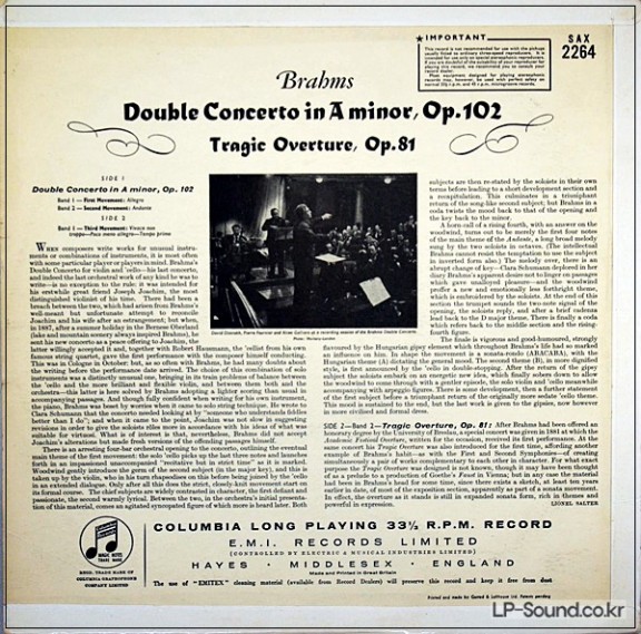 BRAHMS: DOUBLE CONCERTO OISTRAKH/FOURNIER GALLIERA SAX 2264 > 협주곡